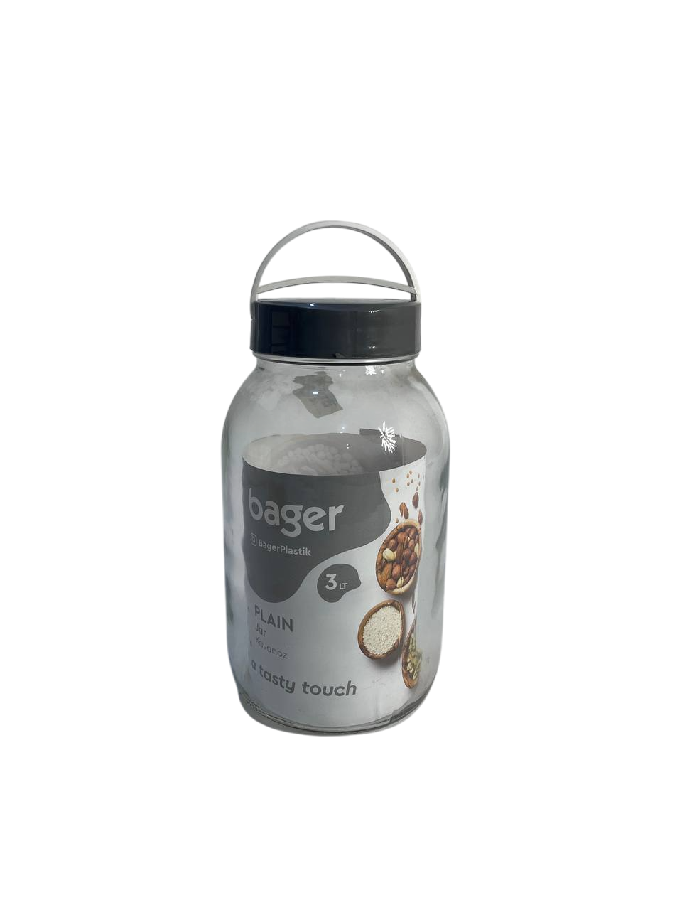 هذا مرطبان تخزين زجاجي من باجر بلاستيك سعة 3 لترات.