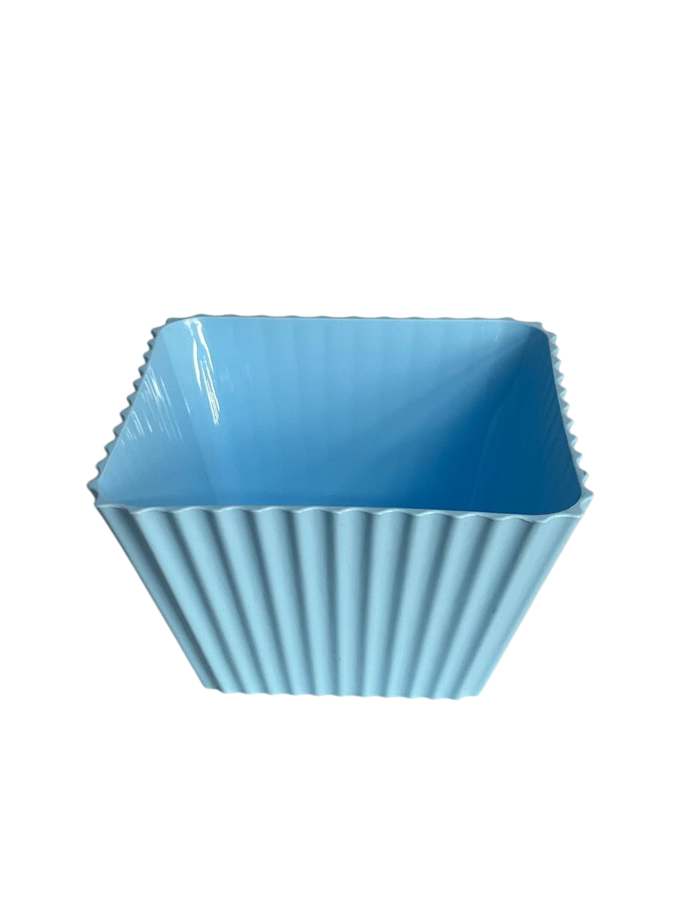 وعاء بلاستيكي أزرق فاتح مضلع ومربع الشكل.