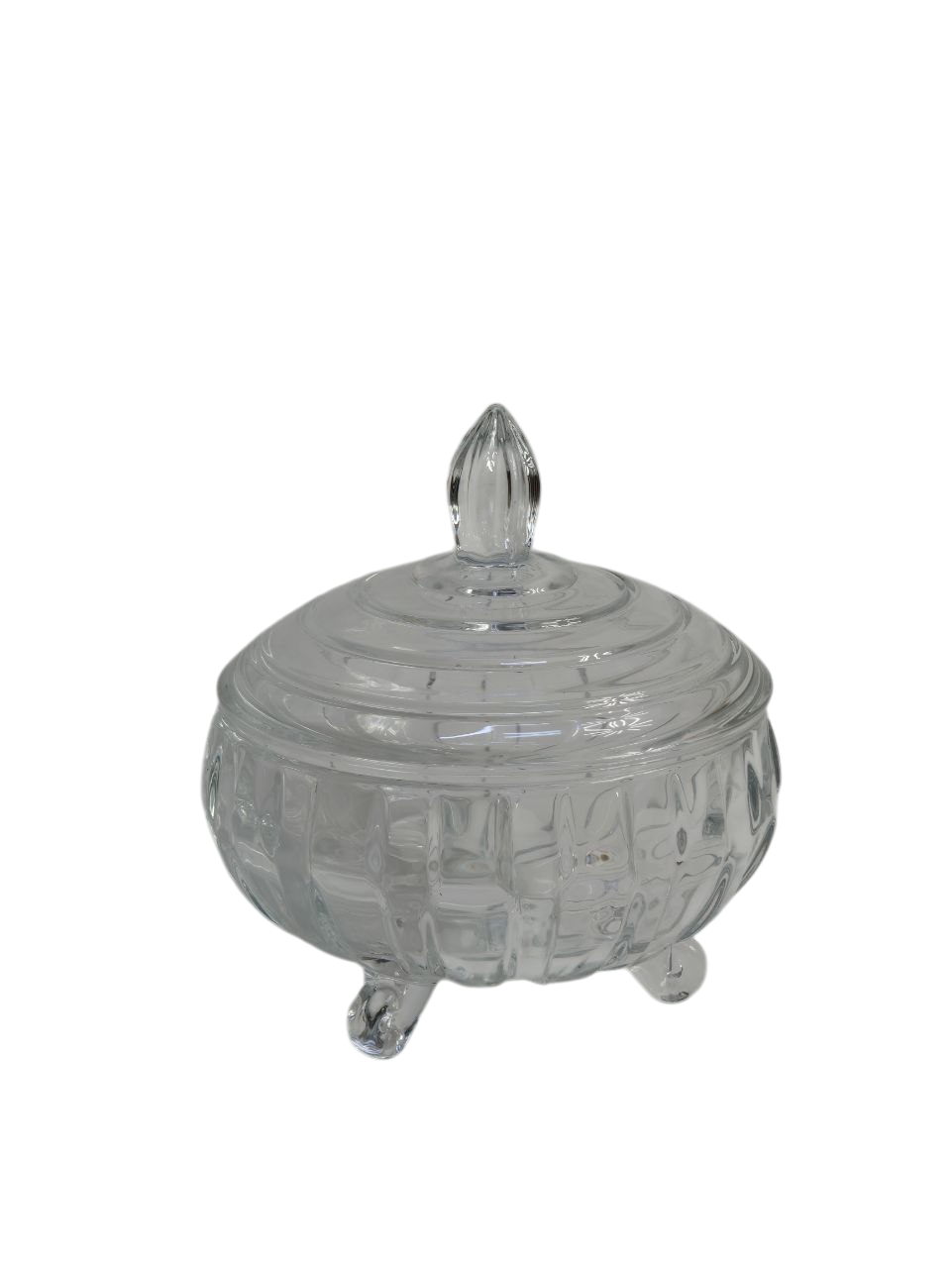 هذا طبق حلوى زجاجي شفاف، يُعرف أيضًا باسم وعاء الحلوى أو وعاء السكر.