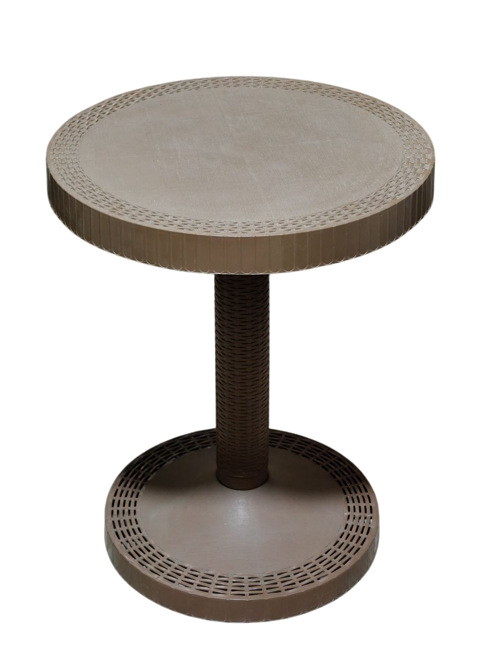 طاولة دائرية من الخيزران البلاستيكي، نوع من الأثاث الداخلي والخارجي