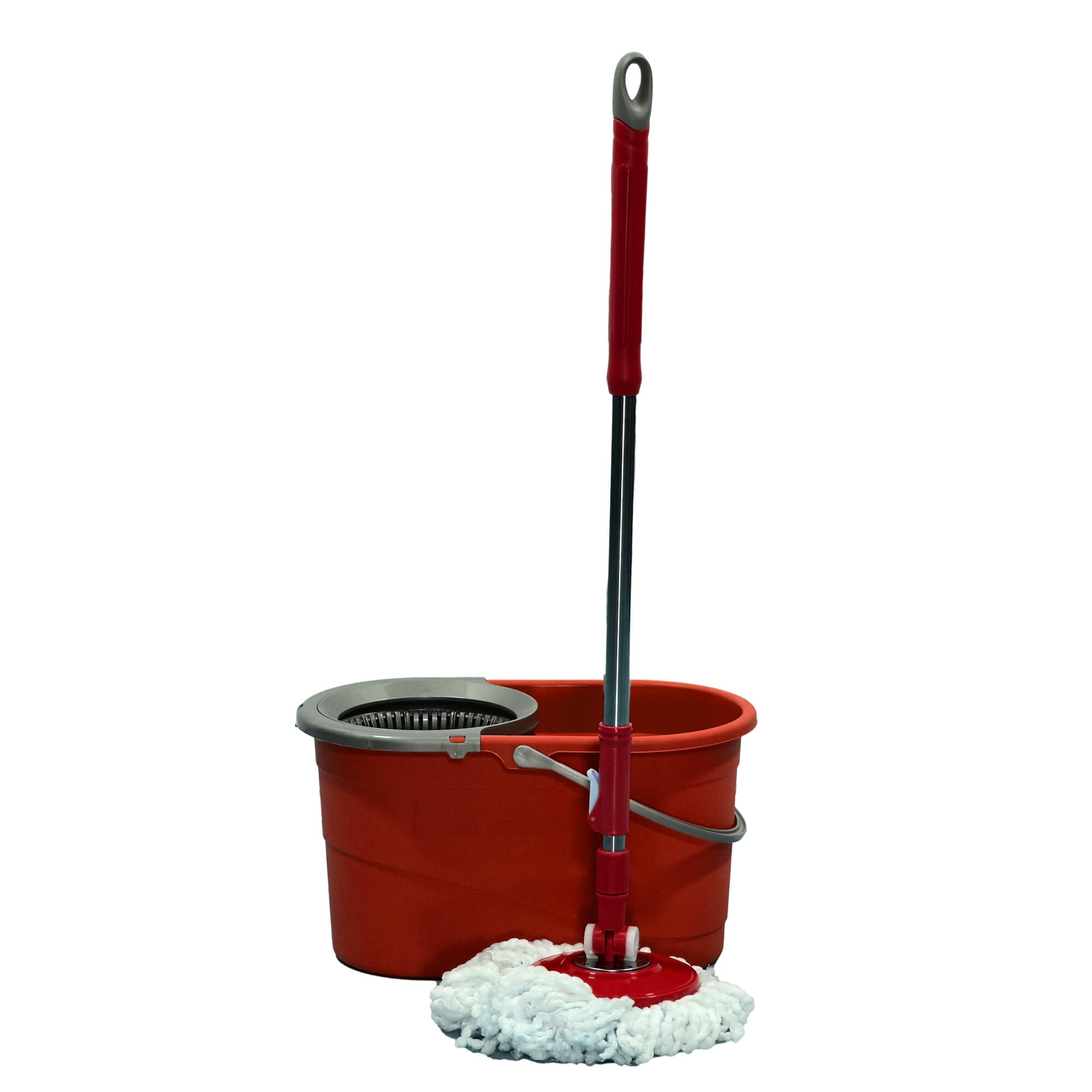 طقم ممسحة دوارة ودلو. صُمم هذا النظام لتنظيف الأرضيات دون استخدام اليدين، حيث تتميز الممسحة بدوارة تعصر الماء بكفاءة في سلة مدمجة، مما يسمح لك بالتحكم في مستوى الرطوبة المناسب لأنواع الأرضيات المختلفة.