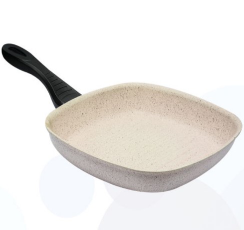 هذه مقلاة شواء مربعة من الجرانيت البيج من توب شيف أو كوكين عبود.