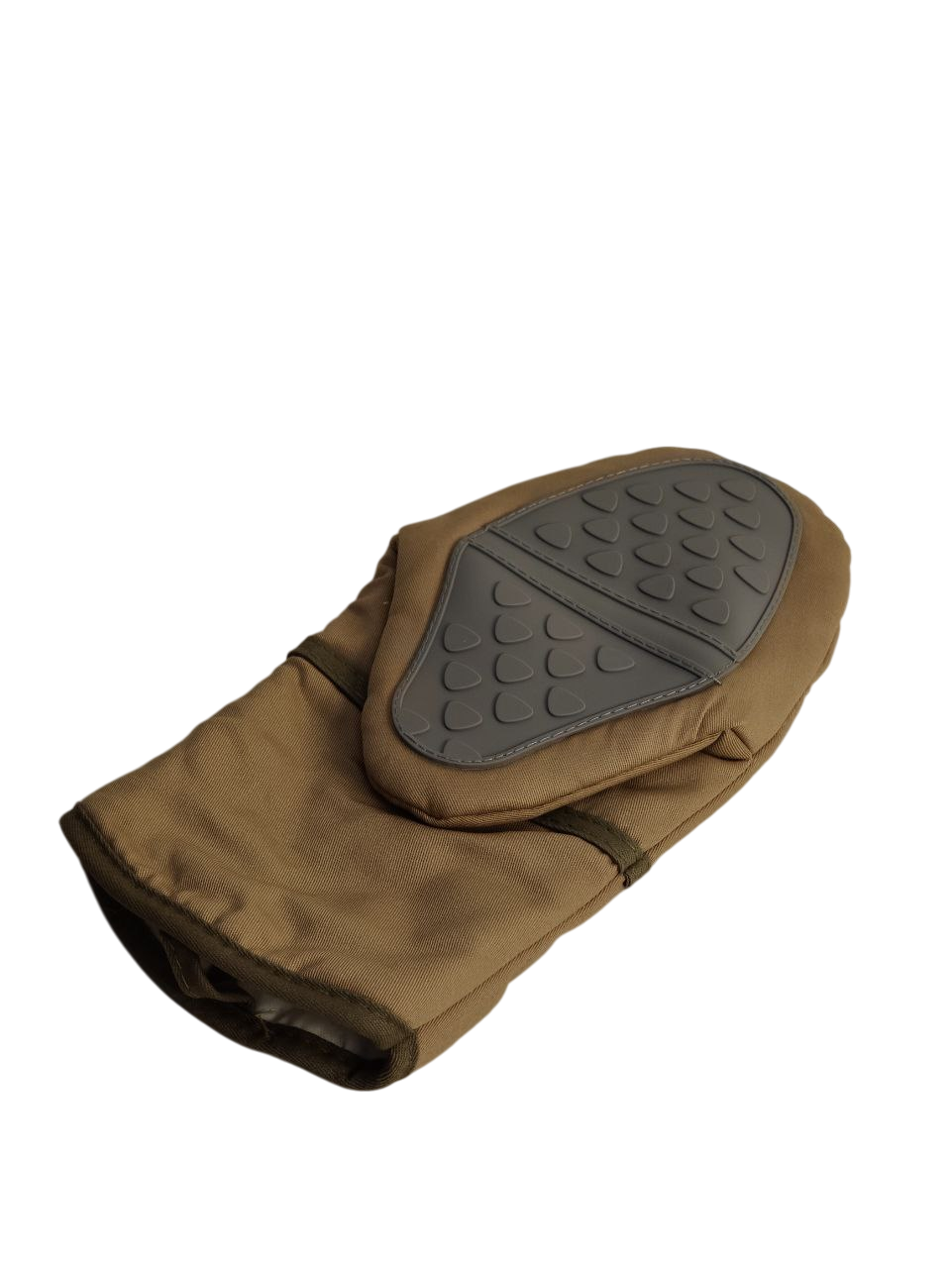 التصميم: يتميز هذا الواقي بسطح خارجي صلب ومجزأ، مصنوع غالبًا من مادة متينة مثل النيوبرين أو المطاط، لامتصاص الصدمات ومقاومة التآكل. يساعد الغطاء القماشي على دمجه مع البنطال الذي يُركّب فيه.