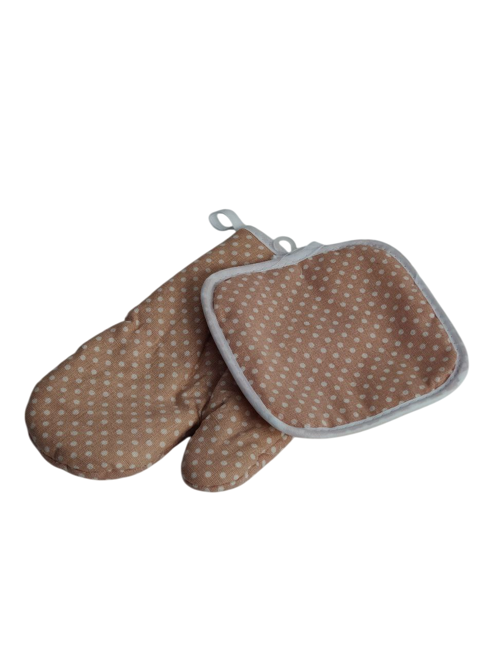 هذه مجموعة من قفازات الفرن وحاملة أواني.