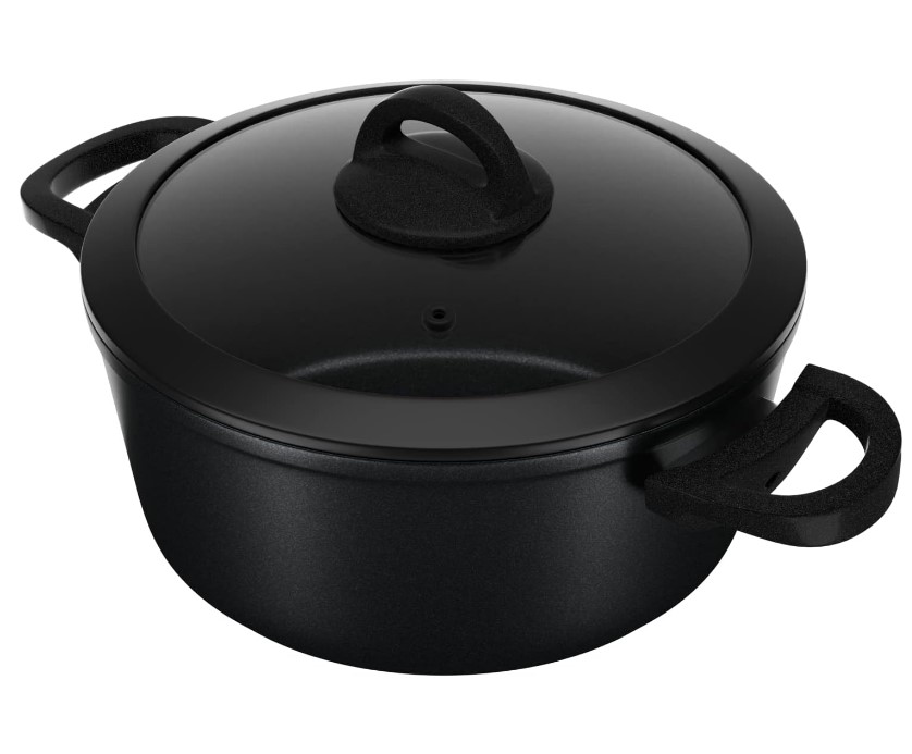 هذا المنتج عبارة عن قدر طهي من الجرانيت الحيوي من كوكين مع غطاء زجاجي، يوجد عادة باللون الأسود.