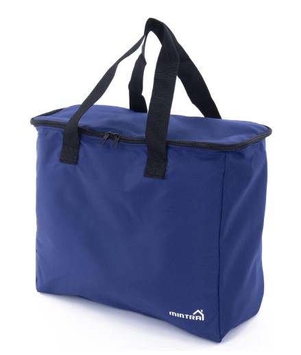شنطة تبريد كبيرة قابلة للطي من إنتاج شركة مينترا (Mintra). تتميز هذه الحقيبة باللون الأزرق الداكن (Navy Blue) أو الأزرق الفاتح، وهي مصممة للحفاظ على برودة أو سخونة المحتويات لفترات طويلة.