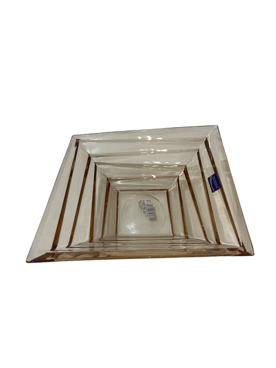 هذا وعاء زجاجي مربع الشكل، مثالي للتقديم.