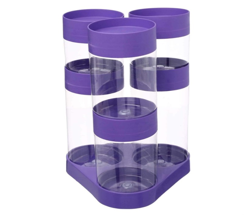 الاستخدامات: مثالي لتخزين وتنظيم مجموعة متنوعة من التوابل، الأعشاب، البقوليات، وغيرها من المواد الجافة في المطبخ.
