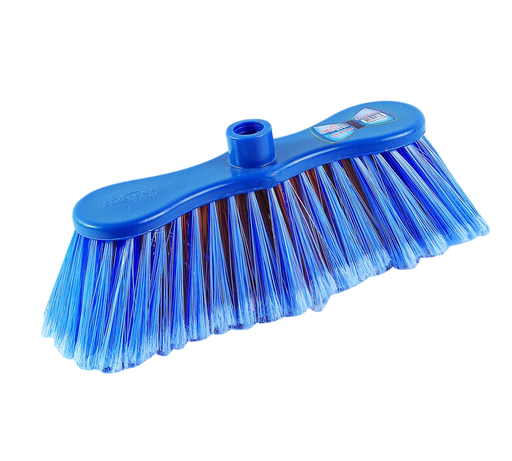 رأس مقشة (مكنسة يدوية) بلاستيكية بشعيرات ناعمة، وهي منتج أساسي لتنظيف الأسطح الصلبة في المنازل.