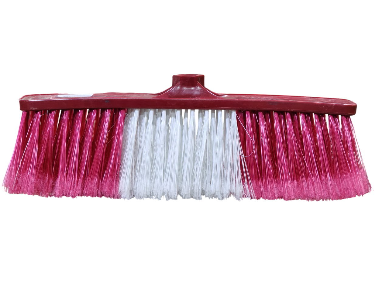 هذه رأس مكنسة بلاستيكية ذات شعيرات صناعية باللونين الوردي/الفوشيا والأبيض. تُستخدم هذه الأنواع من رؤوس المكانس عادةً للتنظيف الداخلي للأرضيات الصلبة مثل البلاط والخشب والرخام، وهي مصممة لالتقاط الغبار والشعر بفعالية.