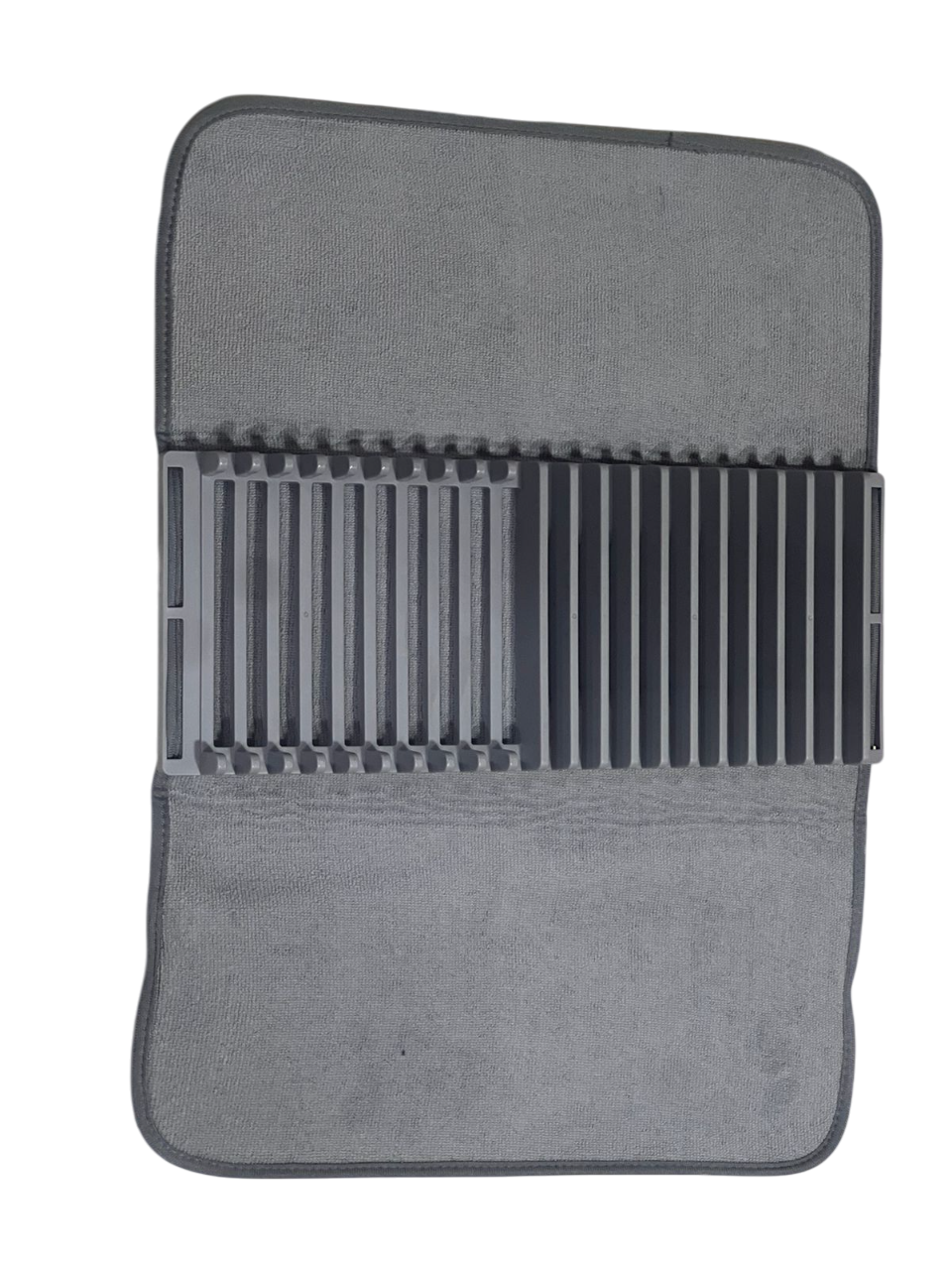 هذا المنتج هو بساط (حصيرة) تجفيف الأطباق 2 في 1، والذي يجمع بين بساط من الألياف الدقيقة (مايكروفايبر) ورف بلاستيكي لتنظيم وتجفيف الأواني.