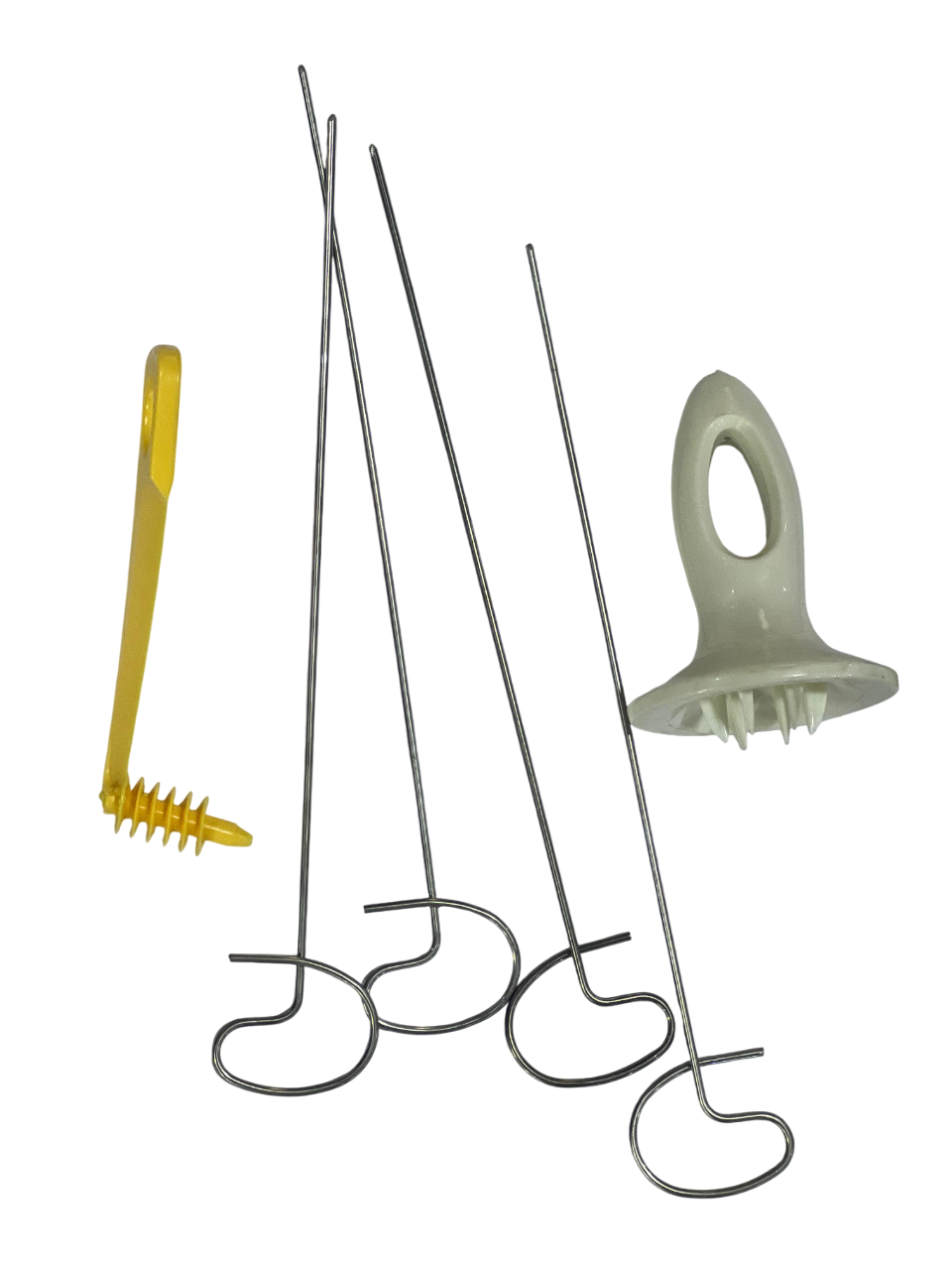 أربعة أسياخ من الفولاذ المقاوم للصدأ: يتم إدخالها من خلال مركز البطاطس لتثبيتها في مكانها أثناء التقطيع وللحفاظ على شكلها أثناء الطهي.