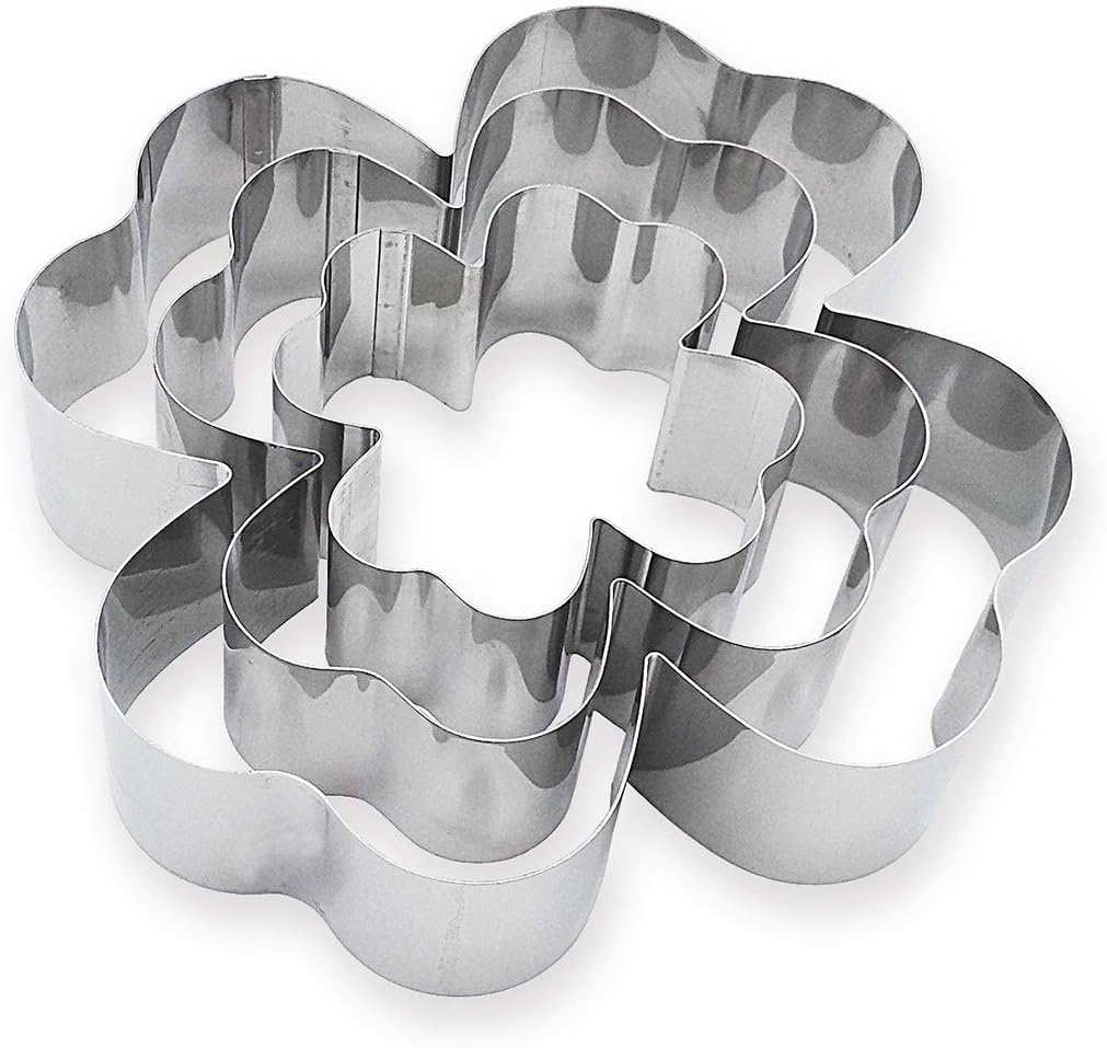طقم قوالب أو قطاعات خبز معدنية على شكل زهرة، مصنوعة من الفولاذ المقاوم للصدأ.