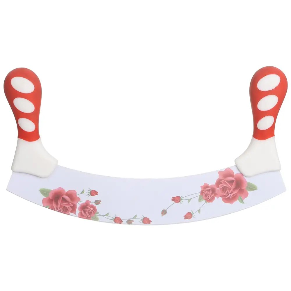 التصميم والمادة: يتميز هذا الإصدار بشفرة منحنية واحدة مع مقبض في كل طرف لتحكم وثبات أفضل. تحافظ المقابض المريحة على سلامة اليدين بعيدًا عن حافة القطع. السكين الظاهرة في الصورة مزينة بنقش وردة.