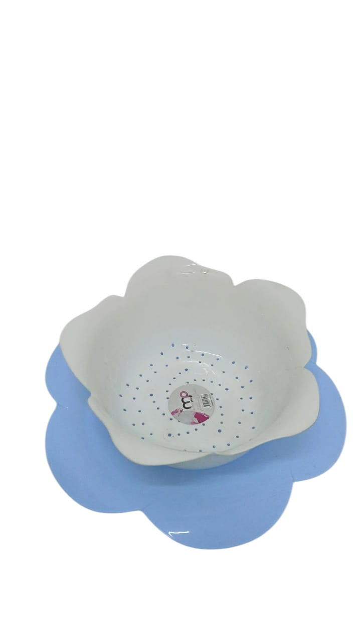 الوظيفة: هو طقم 2 في 1 يتكون من مصفاة داخلية بيضاء مثقبة وطبق خارجي أزرق غير مثقب. يُستخدم لغسل وتصفية الخضروات والفواكه والمعكرونة، حيث يتم جمع الماء في الطبق السفلي.