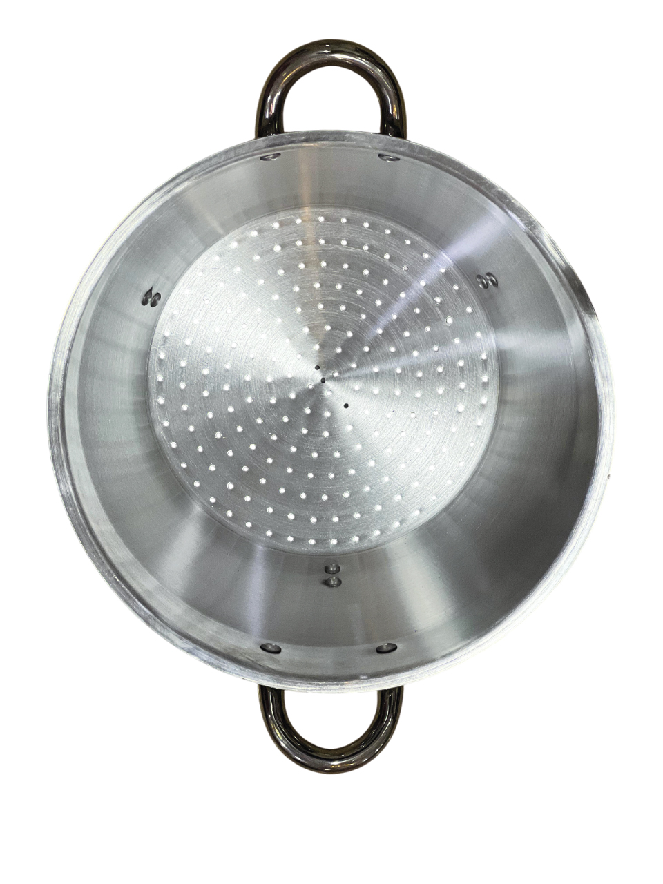 مصفاة دائرية من الألومنيوم، تُعرف أيضًا باسم “مصفاة الطماطم” في الأسواق المصرية، وهي أداة مطبخ أساسية تُستخدم لتصفية السوائل من الأطعمة الصلبة مثل المعكرونة والخضراوات ولب الفاكهة.