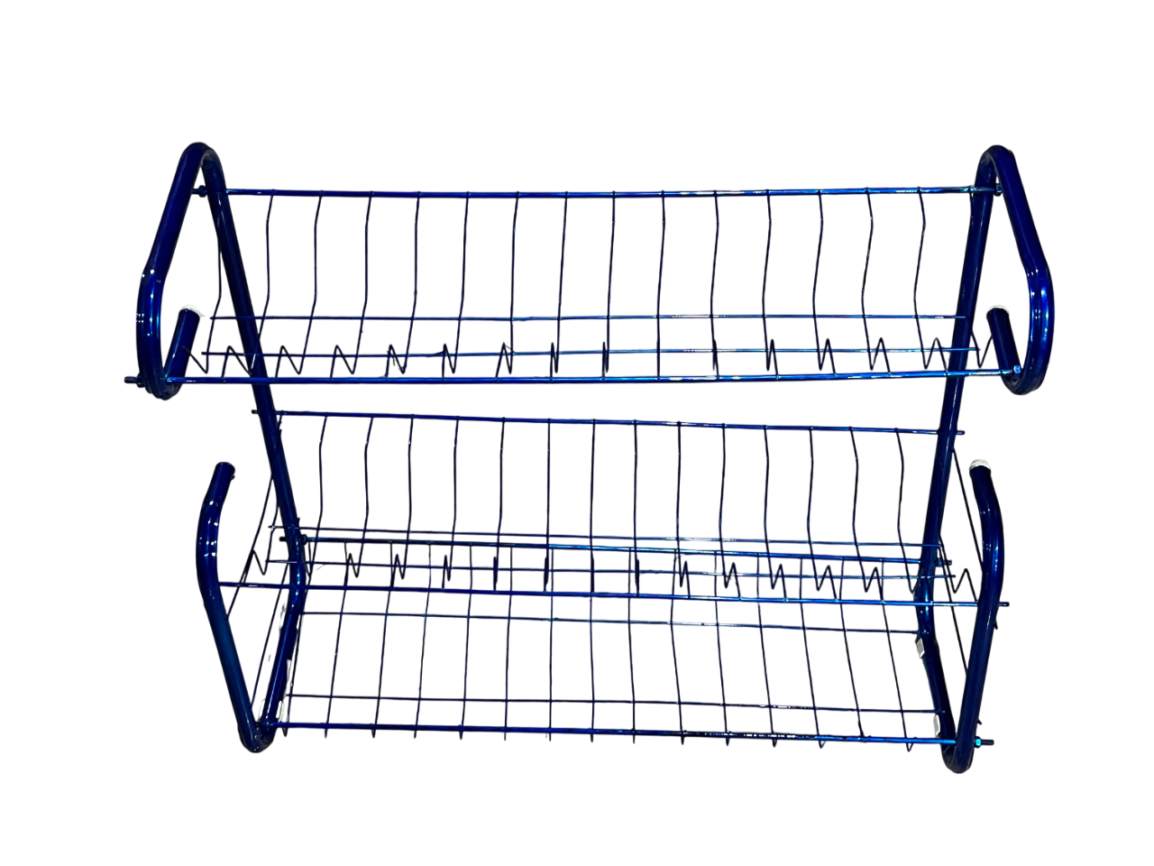 العنصر الموجود في الصورة هورف تجفيف أطباق سلكي ذو طبقتين ، مصنوع عادةً من المعدن ومطلي باللون الأزرق. صُممت هذه الرفوف لتوفير مساحة على سطح المطبخ من خلال زيادة التخزين الرأسي، حيث توفر مستويات منفصلة للأطباق والأوعية.