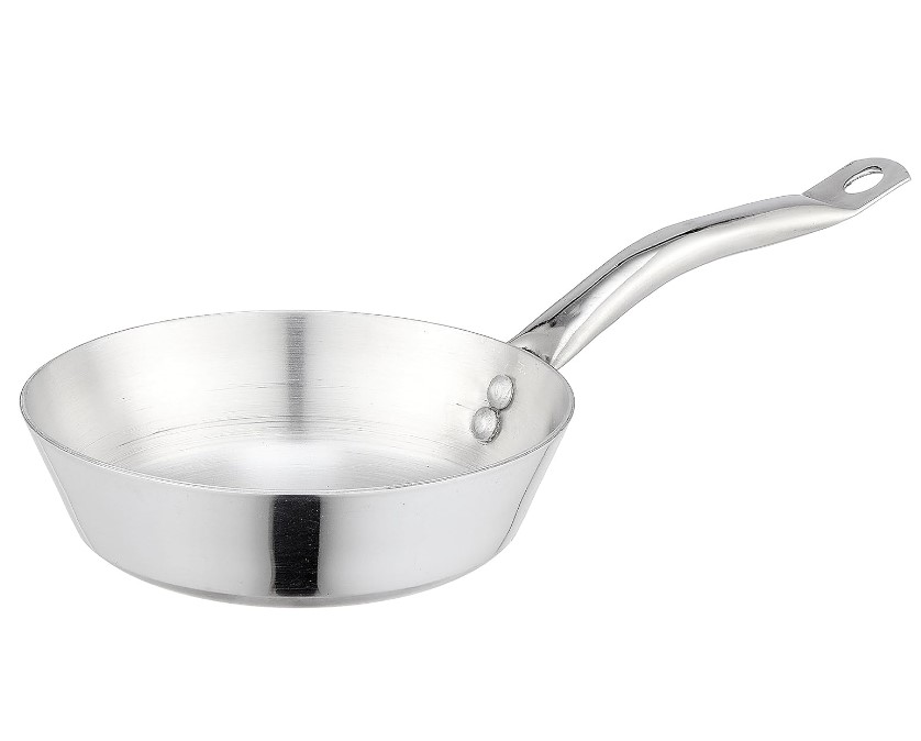 مقلاة القلي المصنوعة من الألومنيوم أو الستانلس ستيل هي أداة طهي أساسية تتميز بتصميم كلاسيكي ذو جوانب منخفضة ومقبض معدني طويل. يسمى هذا النوع من المقالي أيضًا “مقلاة طشة” في بعض المطابخ العربية، وهو مثالي للتحمير السريع.