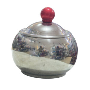 3-piece casserole set with handle, stainless steel, and lid.
