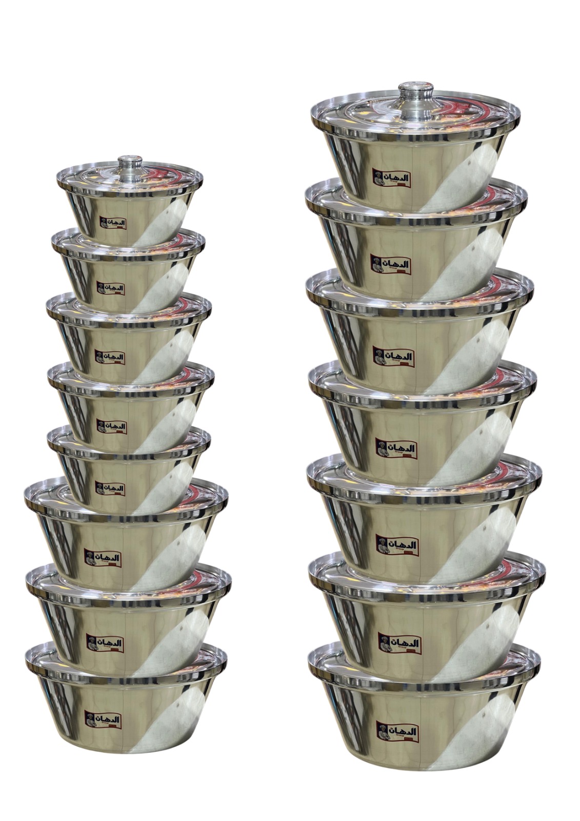 The image shows a set of aluminum cookware with a distinctive conical design.