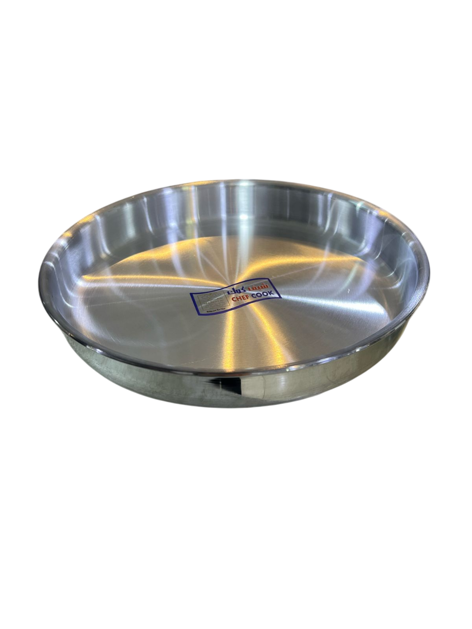 This item is a Chef Cook round aluminum oven tray or baking pan. It is made from aluminum, designed to distribute heat evenly, and is available in various sizes.