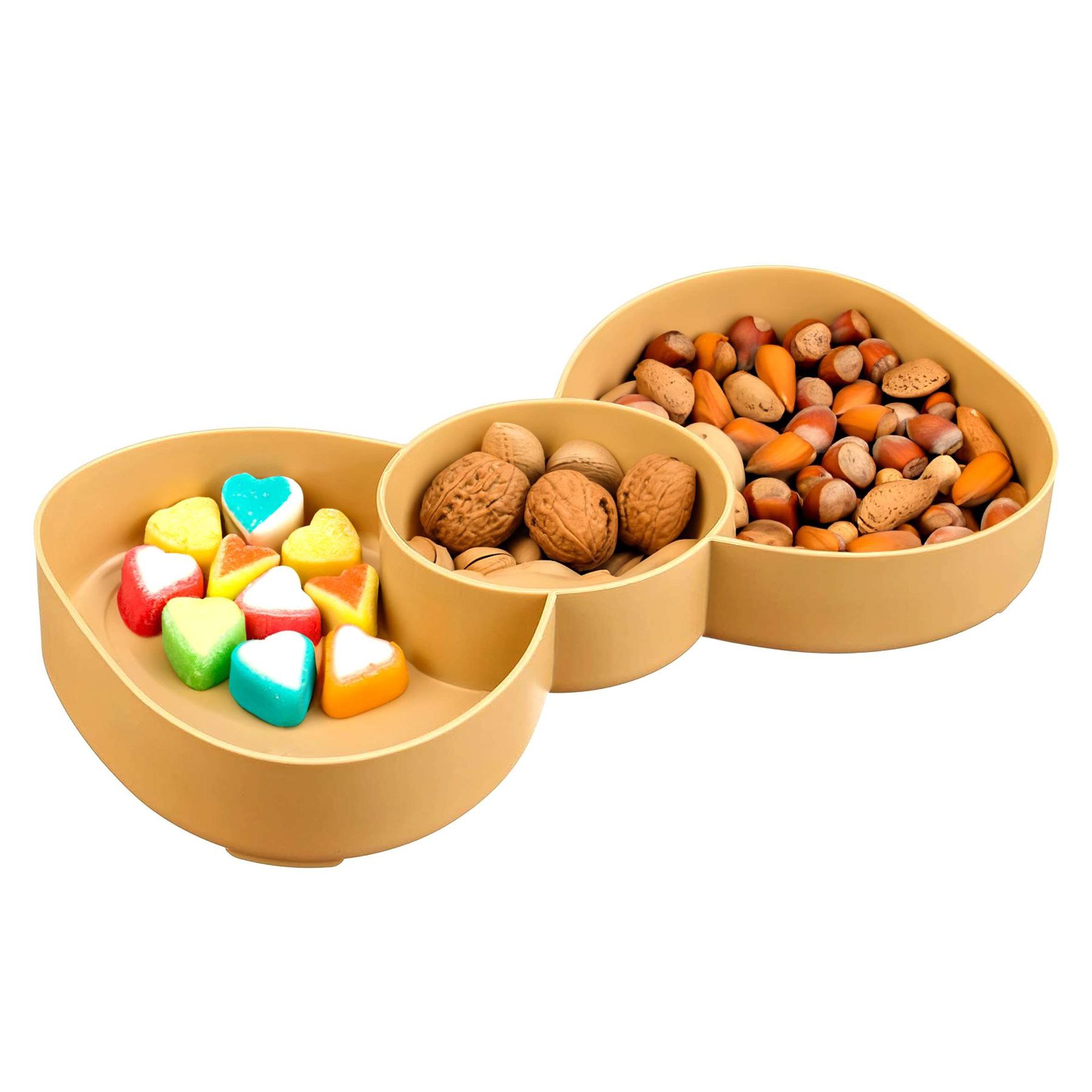 Function: This dish is used to serve a variety of foods separately, such as nuts, candies, dried fruits, or other snacks.