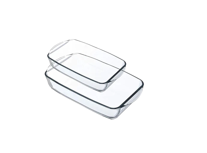 a set of two rectangular glass baking dishes or casserole dishes. They are commonly made from heat-resistant materials like borosilicate or tempered glass, allowing them to be safely used in the oven, microwave, refrigerator, freezer, and dishwasher.