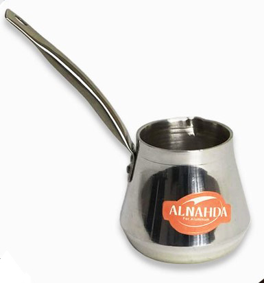 This is an aluminum milk pot, specifically from the Alnahda brand, designed for boiling milk and other liquids. Although the pot itself is made of aluminum, it features a stainless steel side handle.