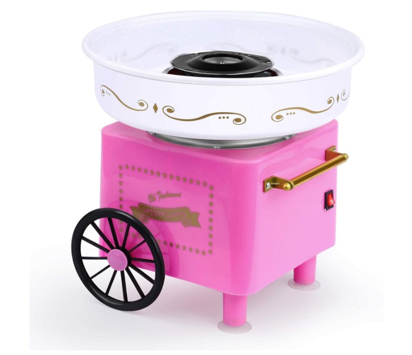 Designed with a pink cart body, roll wheels, and gold-tone accents.