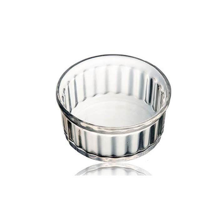 The product pictured is a Pyrex Fluted Glass Ramekin. Also known as a single flan dish, this dish is oven-safe and features high heat and thermal shock resistance.