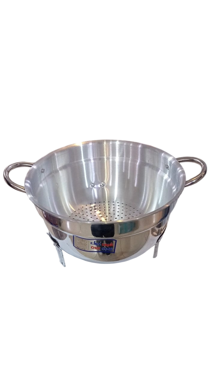 Brand: The words “CHEF COOK” appear on the bottom of the colander.