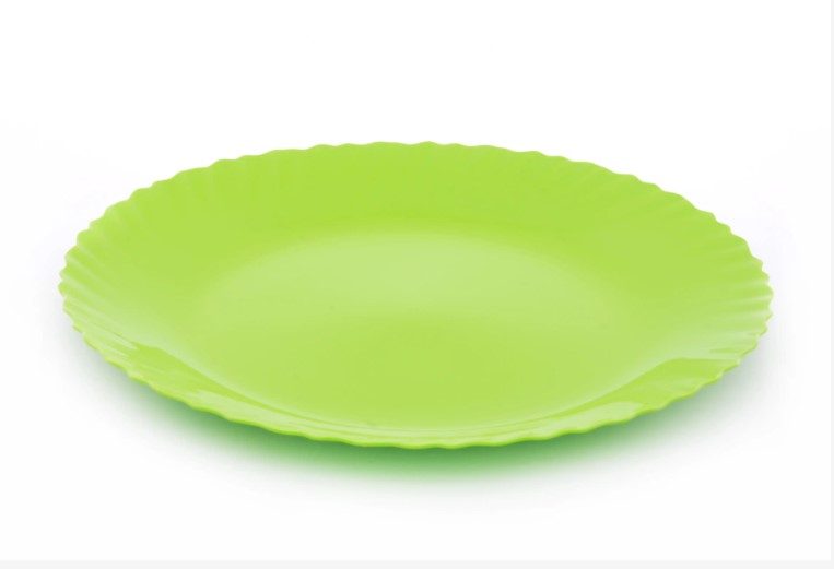 The plastic plate pictured is from Mintra, specifically from their Curly collection, featuring a wavy design.