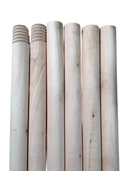 The image shows a wooden stick (broom handle), an essential piece used to secure broom and mop heads, making household cleaning easier.