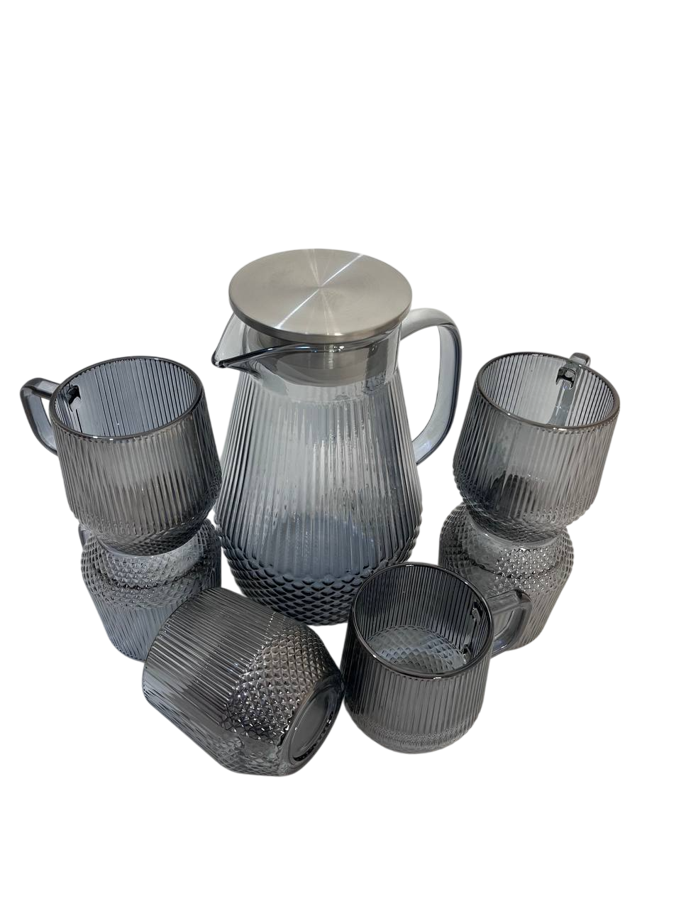 Design: The set has a modern aesthetic with a distinctive vertical ribbed pattern that adds sophistication and provides a secure, comfortable grip. The pitcher features a stainless steel lid which helps keep contents fresh and allows for a smooth, drip-free pour.