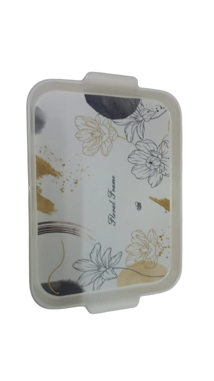 The image shows a square melamine serving dish.