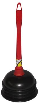 cup plunger, a type of drain clearing tool with a straight handle and a plain rubber cup. These plungers are designed specifically for use on flat surfaces like kitchen sinks, bathroom sinks, and bathtubs, where they can form a tight seal over the drain hole.