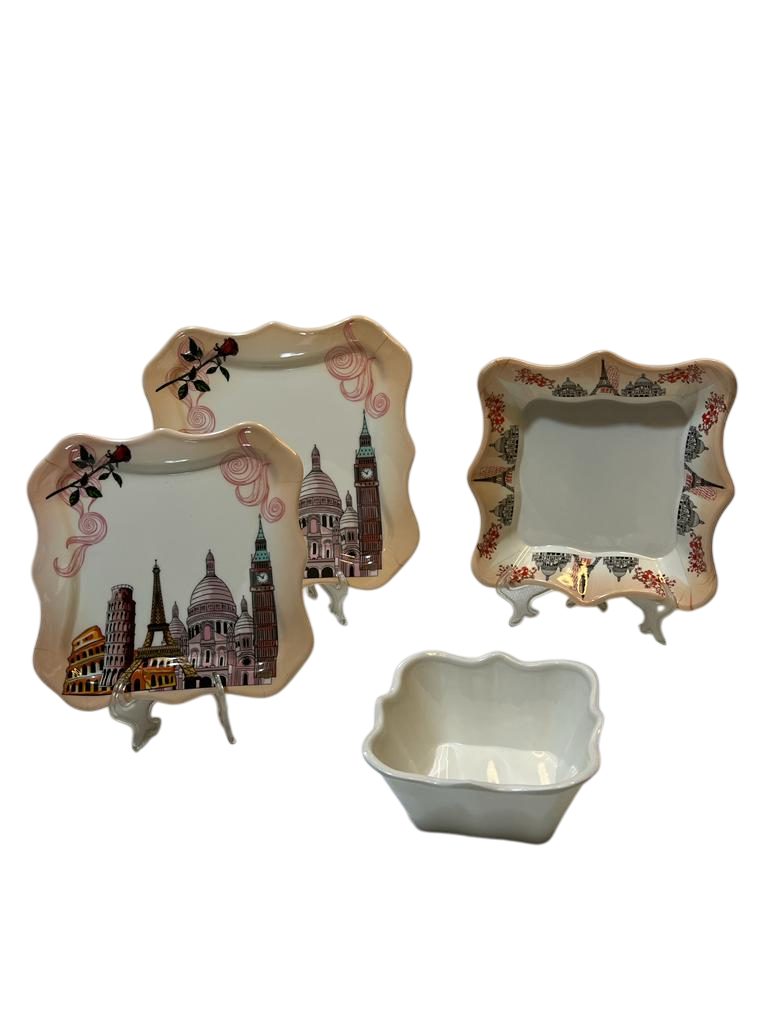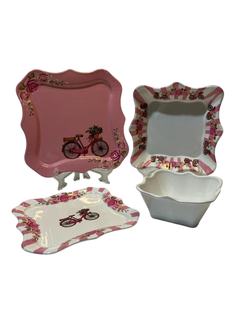 This is a 38-piece Malaysian-style melamine dinnerware set.