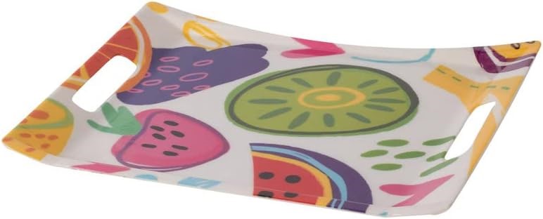 Design: Features a vibrant, multi-colored abstract fruit pattern with a summery feel.
