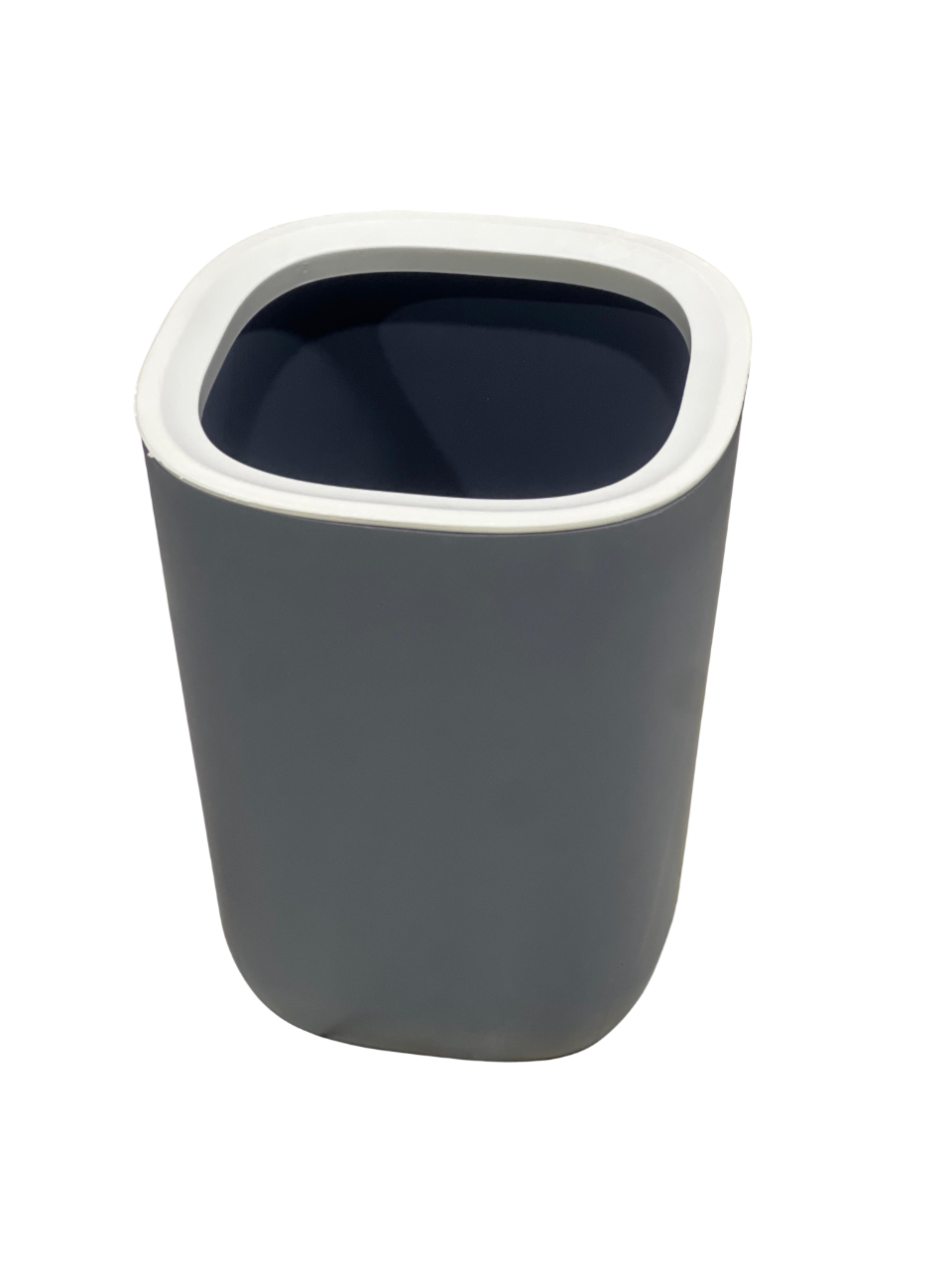 This product is a square, modern plastic wastebasket, typically designed for use in bathrooms, bedrooms, or offices. It features a simple, lidless design with a distinctive two-tone color scheme.