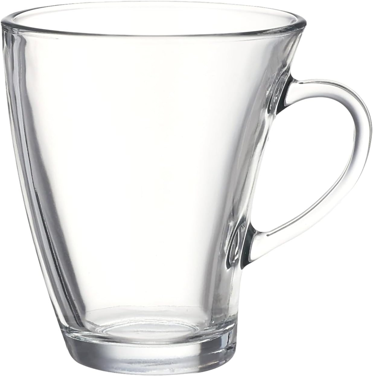 Penguen Mug, a clear glass mug with a distinctive flared or “penguin” shape.