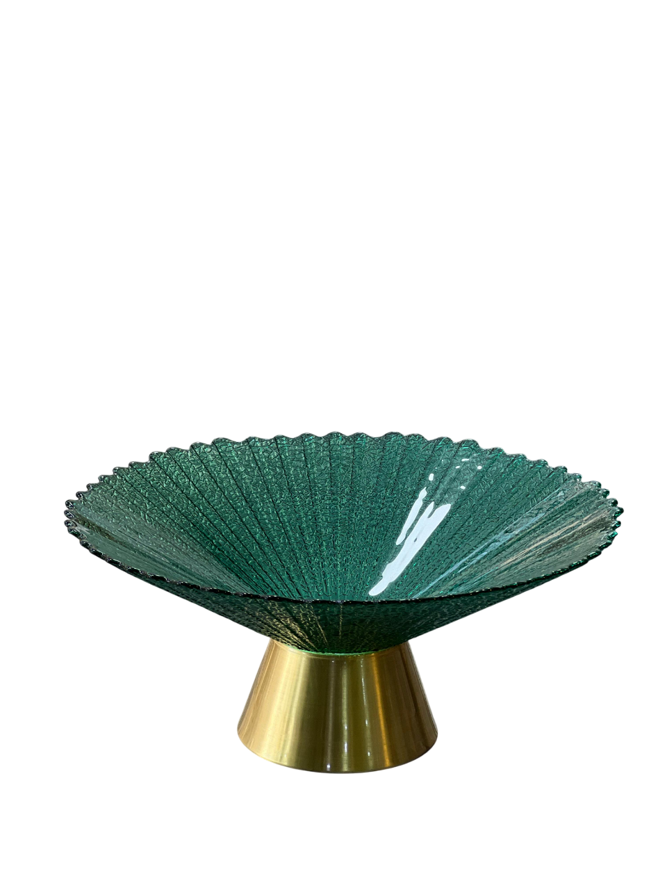 Material: The bowl top is made of colored glass, and its conical base is crafted from shiny gold metal.