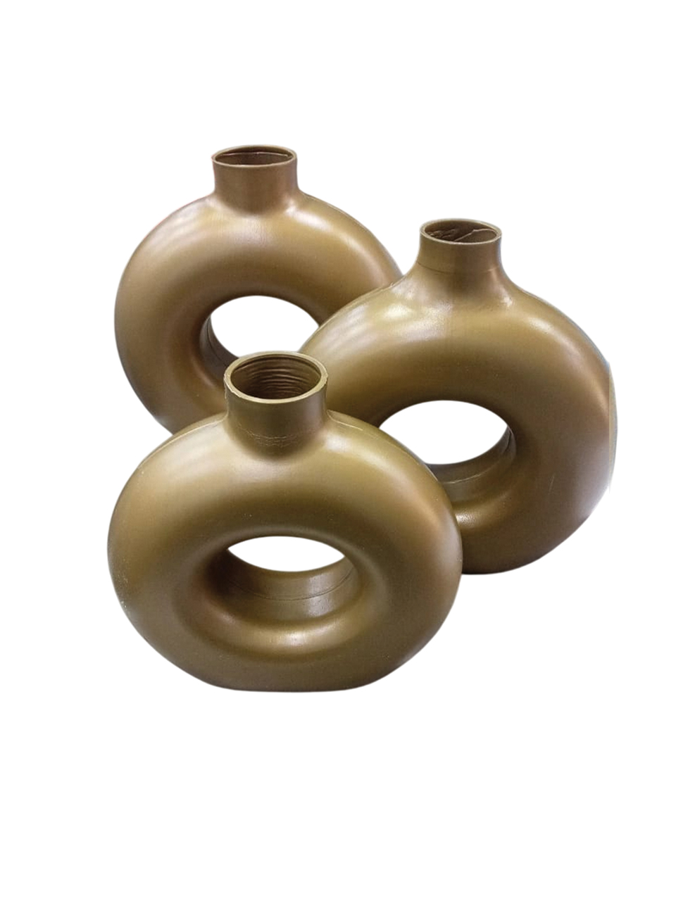 set of three “Donuts” shaped vases used for home and office decoration. These are modern, minimalist, hollow, round vases with a small neck opening.