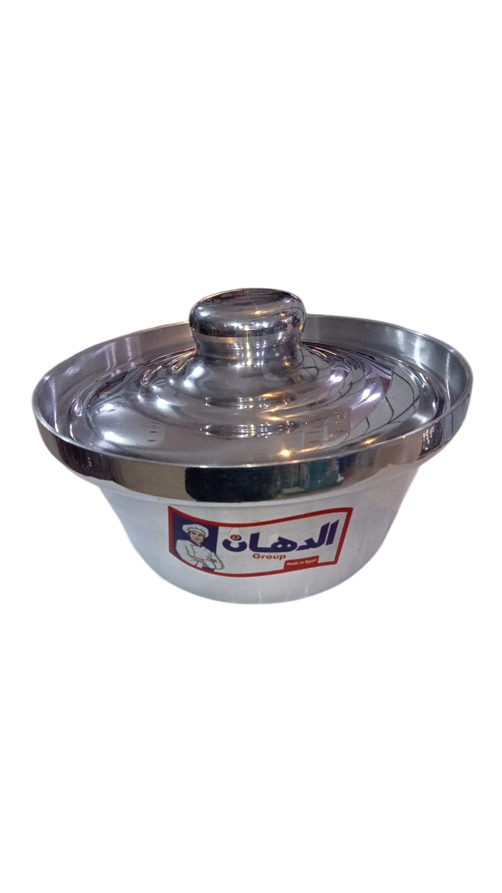 conical cooking pot , often referred to locally as a “shawarma pot” or “beans pot” (dammassa). It features a unique, slightly spherical shape designed for even heat distribution, which is ideal for slow-cooking various dishes like ful medames or stews.