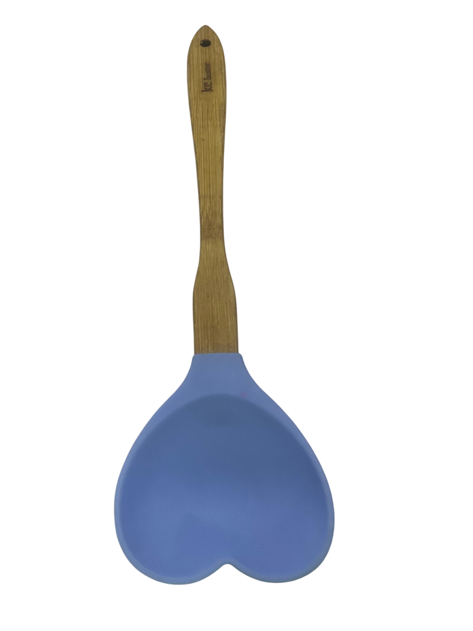 heart-shaped silicone serving spoon (or small spatula) with a wooden handle. It is an aesthetic kitchen tool primarily used for mixing, stirring, baking, or serving, and its design makes it a popular gift item.