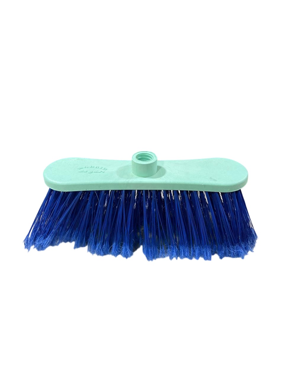 Design: Features a circular recess for attaching a broom handle (sold separately). Common colors are a combination of a light-colored base (like the mint green pictured) and dark-colored bristles (like the blue).