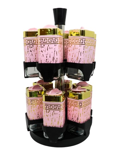 This product is a 12-piece rotating spice rack set, designed for kitchen organization and easy access to spices.