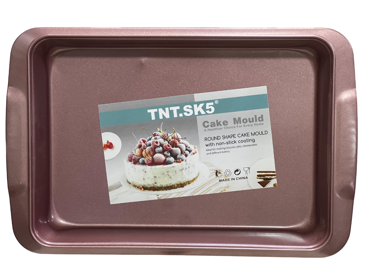 This is a TNT.SK5 non-stick rectangular cake pan (also known as a baking pan or roasting pan). It’s designed to meet various baking needs, including making cookies, pies, cheesecakes, and other types of cakes and savory dishes.
