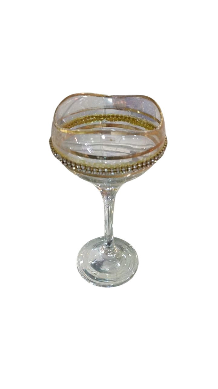 This product is a Turkish sherbet set with a glass stem and a mid-century modern design.