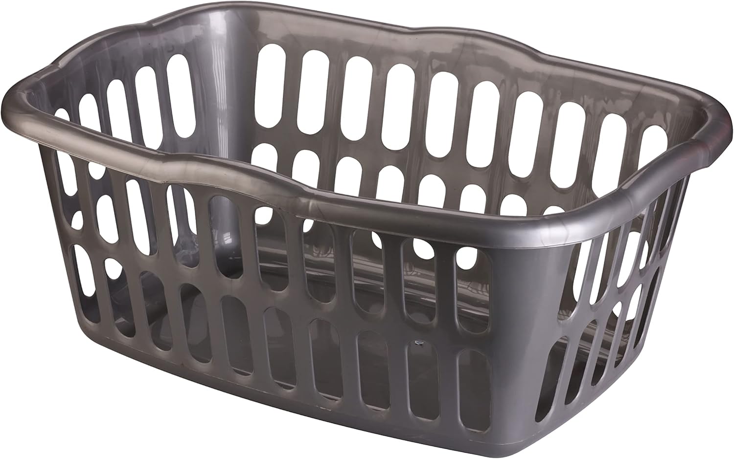 It’s an open plastic laundry basket designed to help organize dirty or clean laundry at home.